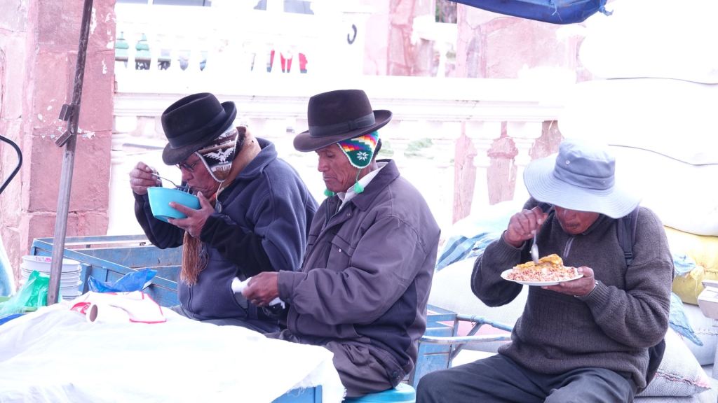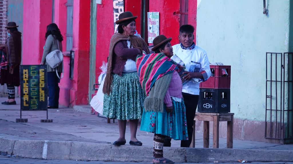 In Viacha ist bei unserer Ankunft Markt. Alles was Beine hat ist heute auf denselben unterwegs, was das Durchfahren schwierig und langwierig gestaltet. Dafür bietet die Marktkulisse interessante Figuren als Linsenfutter.