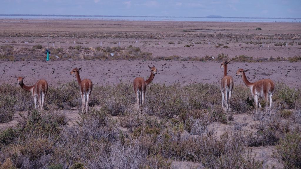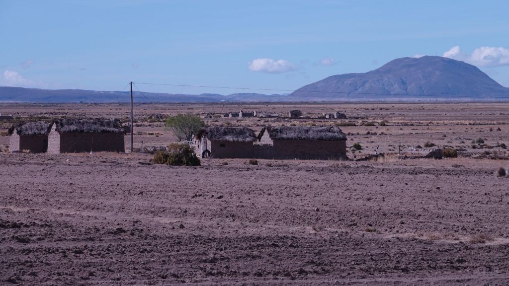 Der Donnerstag weckt uns erstmals seit sehr langer Zeit mit strahlend blauem Himmel. Fast kein Wölkchen ist auszumachen. Das ist eine besondere Freude, bei solch einem Wetter durch diese atemberaubende Bergwelt zu fahren. Die Berggipfel sind jetzt zunehmend mit einer Schneehaube bedeckt. Am Wegesrand tauchen des öfteren verlassene Lehmhüttensiedlungen auf, die sich mit ihren Strohdächern sehr idyllisch in die Landschaft fügen. Auch Wildlife ist jetzt zu beobachten. Ich bin mir nicht ganz sicher, doch die den Lamas und Alpacas ähnelnden Tiere, die wir mehr und mehr zu sehen bekommen sind wohl Vicuñas – Artverwandte. Aber Guido mag mich da möglicherweise korrigieren!
