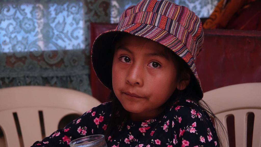 Von Colchani aus gibt es eine Zufahrt auf den Salzsee, der sich nur an wenigen Stellen betreten lässt. Colchani, selbst an der Hauptstraße nach Uyuni gelegen, erweist sich als gottverlassenes Kaff mit einem verlassenen Bahnhof und wenigen Hütten, in denen meist geschlossene Geschäfte für die Salar-Touristen untergebracht sind. In einer der Hütten bekommen wir wenigstens noch vor unserem Ausritt auf den See ein köstliche Mittagsessen und einen Wasservorrat, denn wir wollen möglicherweise an der Isla de Inkahuasi im Zelt übernachten, wenn es die Begebenheiten zulassen. Die Köchin ist sehr um unser leibliches Wohl bemüht und ihre Enkelin schaut uns – die Männer im komischen Outfit – aus großen Augen interessiert aber verständnislos an!