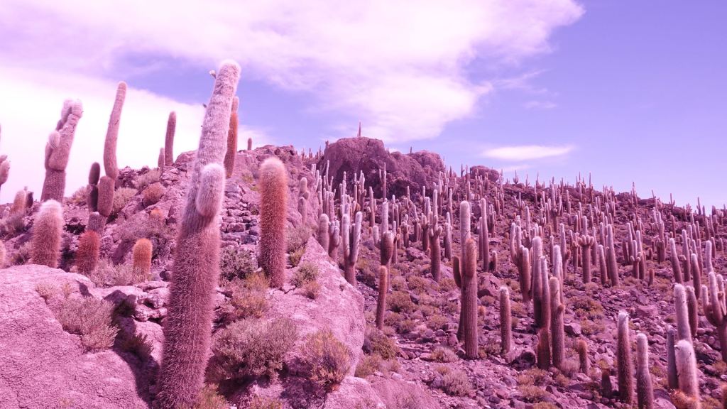 Der Gang über die Insel lässt uns ganz ehrfürchtig auf diese großartigen Gewächse blicken. Kaum vortellbar, dass diese schon da waren als der Kölner Dom gebaut wurde, als in Europa die Pest wütete, oder Christoph Columbus über Amerika stolperte. Wie bei uns Menschen, sind die schöneren Gewächse, nämlich die mit den Verzweigungen, die weiblichen Exemplare, während die männlichen – eben phallusartig 🙂 – nur einfach gerade nach oben gewachsen sind. Es ist nicht erklärlich, wie die Kakteen hierher gekommen sind, jedenfalls ist Inkahuasi die einzige Insel mit diesem Bewuchs. Es gibt noch einige andere Inseln, diese sind aber frei von Vegetation!