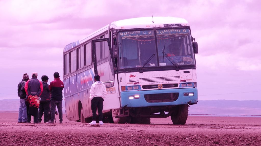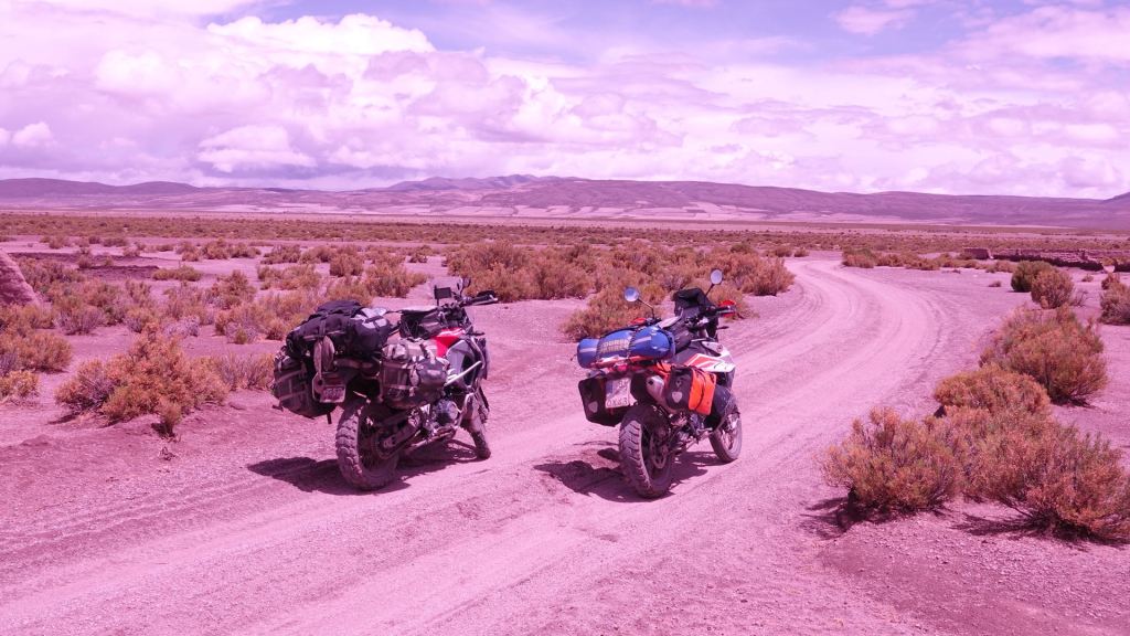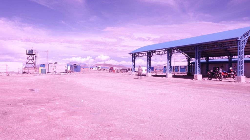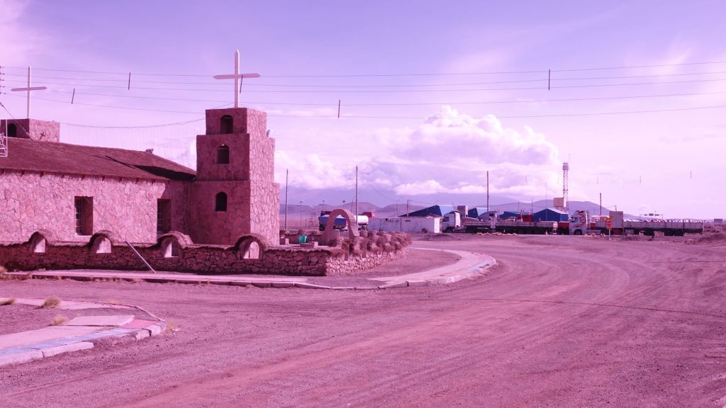 Eigentlich wollen wir uns heute einen kurzen Fahrtag gönnen und in San Christobal oder spätestens in Alota Station machen, doch in San Christobal hält uns nichts und vor Alota weicht der Asphalt wieder erdigem Untergrund. Da das Wetter weiterhin auf der Kippe steht, wollen wir nicht riskieren, dass es in der Nacht regnet und uns morgen nochmal eine Schlammfahrt bevorsteht. Also nutzen wir die Gunst der trockenen Stunde und fahren zur Grenze nach Chile durch. Vor Alota weicht der Lehm für eine Weile dem Sand, was vergleichsweise angenehm zu befahren ist. Es ist halt eine Frage des Standpunktes. Wer aus dem Lehm kommt liebt den Sand, wer vom Asphalt kommt mag ihn hassen!