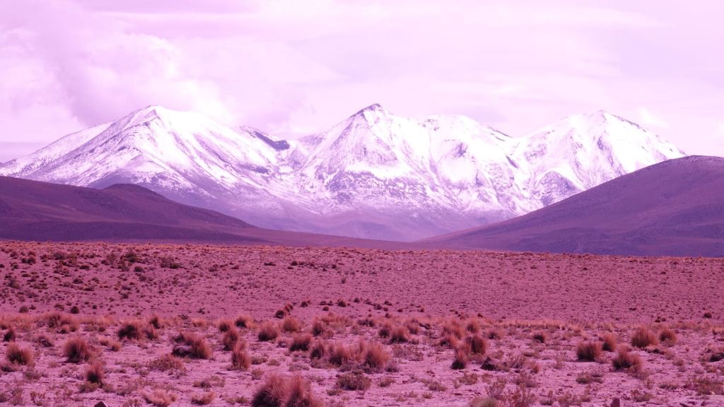 Das Panorama um uns herum wird jetzt spektakulär! Aus der auf etwa 4.000 m gelegenen Hochebene erheben sich ringsherum schneebedeckte Gipfel. Viele davon sind permanent von einer unbeweglichen Wolkenhaube verdeckt, andere zeigen sich aber in ganzer Pracht. Sie müssen wohl um die 5.500- 6.000 Meter hoch sein! Nach dem schwierigen Start endet der Fahrtag doch noch traumhaft und lässt unsere Herzen hoch schlagen!