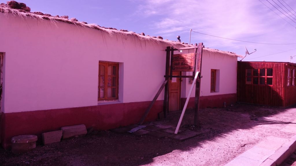 Glücklich und reif für eine schöne Übernachtung erreichen wir um fünf nachmittags den Grenzort Avaroa auf bolivianischer Seite, von dem man uns versichert hat, dass es dort mehrere Hospedajes geben würde; nicht mal etwas ähnliches ist hier zu finden. Acht Hütten für die Grenzer – das war’s! Also müssen wir doch noch über die Grenze. Das ist erstaunlich schnell erledigt – 5 Minuten in Bolivien, 20 in Chile!