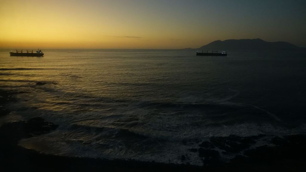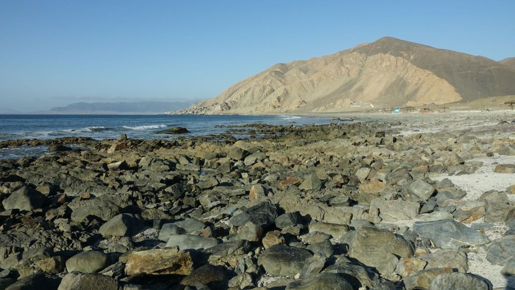 Zehn Kilometer hinter Chañaral finden wir rechter Hand einen Strand mit lauter beschirmten Grillplätzen. Kein Zweifel: Das wird unser Nachtquartier! In der noch gut wärmenden Abendsonne richten wir ohne Zelt, nur mit Plane, Isomatte und Schlafsack unser Nachtlager ein und genießen die zuvor gekauften Kekse und Getränke auf den Felsen am Strand. Sobald die Sonne verschwindet, zieht es uns aber gleich in die Schlafsäcke, denn dann wird’s empfindlich kühl! Was für ein irre schönes Gefühl, nach nunmehr drei Monaten das erste mal wieder im Freien zu schlafen. Ich genieße sehr, den unglaublich intensiven und mir gänzlich unbekannten südlichen Sternenhimmel zu beobachten und schlafe seit langer Zeit einmal durch. Die Nacht über hat es ordentlich geweht. Das Ausschälen aus dem Schlafsack ist entsprechend ungemütlich. Ein paar Meter weiter sitzen zwei Geier auf den Felsen und wirken enttäuscht, dass sich die Gestalten in den Säcken nach der kalten Nacht doch noch bewegen.