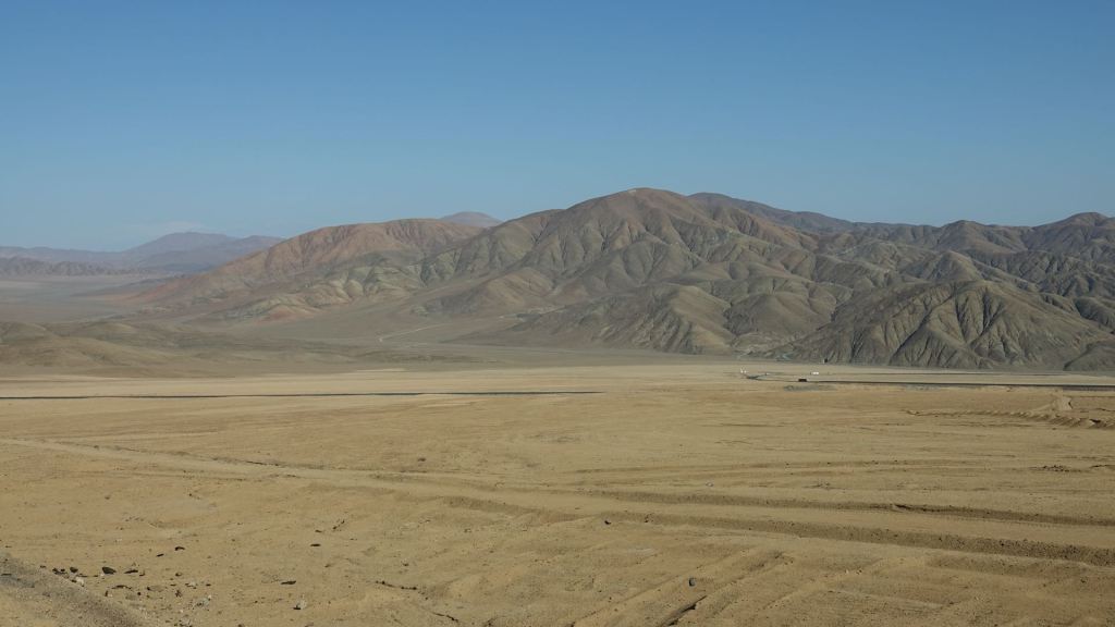 Der Morgen ist ziemlich diesig an der Küste. Die Sonne braucht hier bestimmt bis Mittag, um den Dunst aufzulösen. Sobald wir aber etwas weiter im Landesinneren fahren, da reichen bereits fünf Kilometer Abstand zur Küste, wird es erneut sonnig und warm. Dem Breitengrad nach verlassen wir heute Morgen bei Copiapó die Atacamawüste, doch an der Landschaft ändert das nur wenig. Ja, es tauchen vereinzelt ein paar trockene Büschel Steppengras auf, aber der Grund bleibt staubig und geröllig – die Fahrt öde und langweilig. Da hilft nur gute Musik in den Helm zu leiten!
