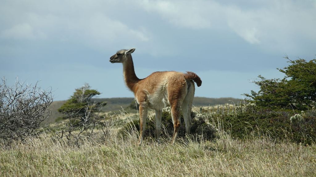Junges Guanaco am Wegesrand von Puerto Natales nach Punta Arenas mit Sturmfrisur!
