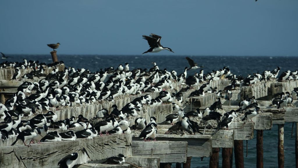 Vogelkolonie am Strand von Punta Arenas – sind wohl eine Art Cormorane!
