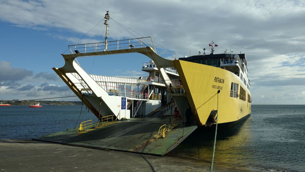 Entgegen aller Ankündigungen ist das Wetter am Dienstag den 27.12. ganz schön. Ein blau-weißer Himmel bewegt sich über uns bei lebhaftem, aber für hier sehr mäßigem, Wind hinweg. Somit gibt es beim Einschiffen auf der Fähre „Patagon“ keine Probleme. Es finden sich hier noch Mesangh, ein Mopedfahrer aus Texas, und Kirsten und Frank, Fahrradfahrer aus Sachsen. Ersterem gebe ich mit meinem Jump Starter Starthilfe, und mit letzteren habe ich eine nette Unterhaltung auf der Überfahrt nach Porvenir, dem ersten Ort auf Feuerland. Feuerland erhielt seinen Namen übrigens durch Fernando Magellan. Als er 1520 die nach ihm benannte Passage vom Atlantik zum Pazifik durchfuhr, sah er nächtens zu seiner linken auf der zerklüfteten und vom Festland getrennten Landseite die vielen Lagerfeuer der indigenen Urbevölkerung und nannte es kurzerhand „Tierra del Fuego“.