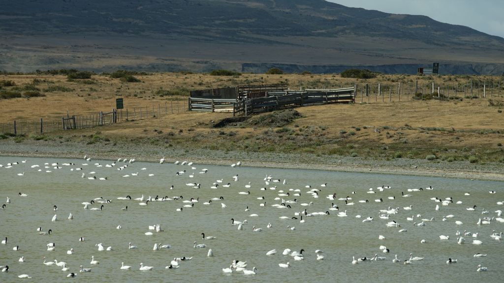 Ein Vogelsee an der Piste entlang der „Bahia Inútil“