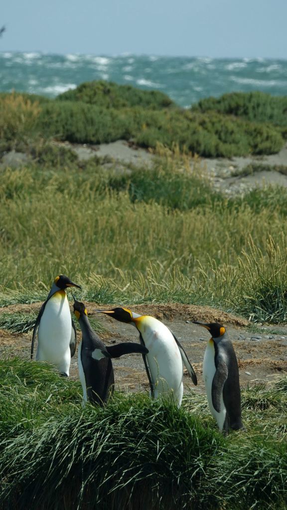 Sie mögen den kalten, stürmischen Wind: Königspinguine am Ufer der Baha Inútil!