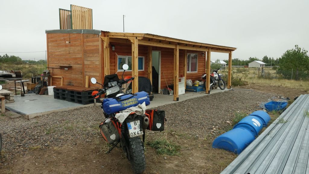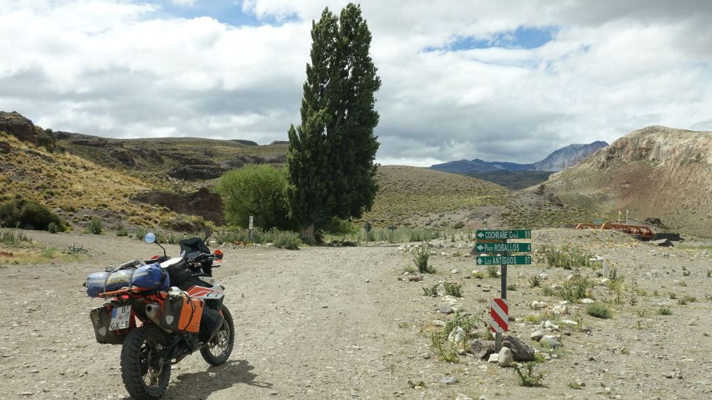 Am Freitag, den 6. Januar fahre ich nach einem Ruhetag, der meiner Bronchitis gut getan hat, mit Steve etwa drei Stunden die Ruta 40 bis Bajo Caracoles, wo Mopeds und Mägen nochmal aufgefüllt werden, ehe wir uns wieder trennen und ich über eine einsame Piste auf die chilenische Grenze und die Carretera Austral zu steuere.