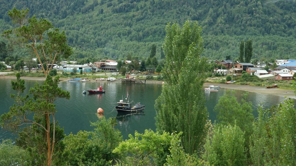Nach gut 30 Kilometern ist auch dieser Part gemeistert und wir gelangen nach Puyuhuapi, einem kleinen Fischerdorf, das super idyllisch am Ende eines Pazifikfjords gelegen ist. Hier sind wir ganz nah der Linie, über die wir vor drei Wochen mit dem Schiff von Puerto Montt nach Puerto Natales unterwegs waren!