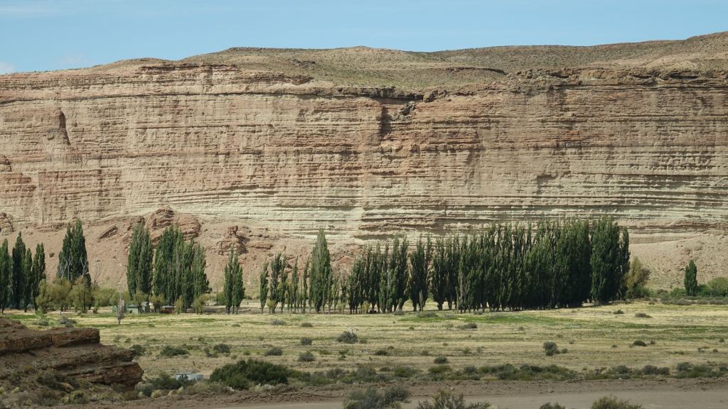 Dann folgen fast 700 km durch die Steppe in streng westlicher Richtung gen Atlantik, für die meine Erwartungen eher gering sind. Umso glücklicher bin ich über die doch recht abwechslungsreiche Fahrt auf der endlosen Ruta 25 durch eine tolle Landschaft mit schönen Tafelbergen die oftmals von Flüssen durchstreift werden. Das Wetter wir zunehmend besser, was allerdings auch die am Vormittag noch angenehmen Temperraturen auf über 33 Grad steigen lassen. So fahre ich stundenlang mit guter Musik auf den Ohren durch die Steppe und lasse meine Seele baumeln, an Buenos Aires denken und mich vorfreuen!