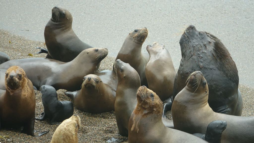Auch dieser Abstecher lohnt den Aufwand. Es ist unbeschreiblich, was für ein Treiben und Lärmen am Nordstrand herrscht, wo sich überwiegend Seelöwen aufhalten, dazwischen auch ein paar Seeelefanten. Hier herrscht eine strenge Hackordnung: Ganz klar sind die beeindruckend kräftigen Männchen mit der Löwenmähne die Meister im Ring! Wenn sie ihr Maul aufreißen und ihre ungepflegten Zähne zeigen, möchte man nicht in der Nähe sein!